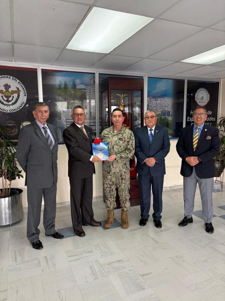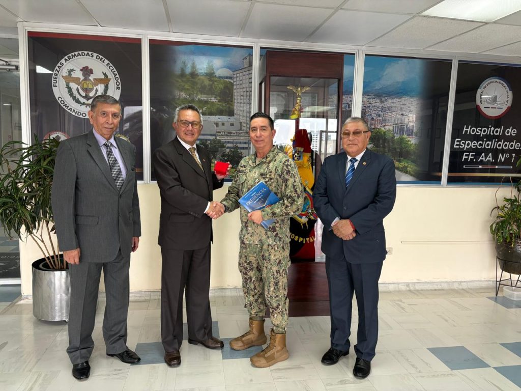 El señor Presidente de la Asociación de Generales y Almirantes de las Fuerzas Armadas (ASOGENAL), Vicealmirante John Merlo León, acompañado por los señores generales Robert Tandazo Vicepresidente de la F.T, BGrl. Eduardo Esparza Vicepresidente de la F. Aérea, miembros del Directorio, realizaron una visita protocolar al señor Contralmirante Patricio Rivas, Director General del Hospital Militar.